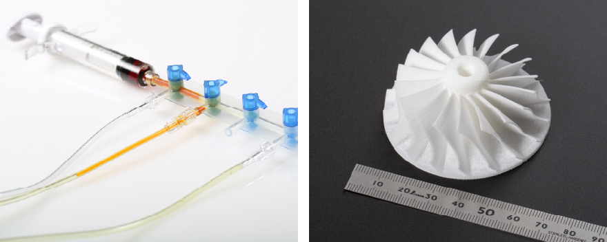 たとえば、人の臓器模型や、内部構造が複雑な部品など、従来では作れなかった形状の様々なものが作れます。